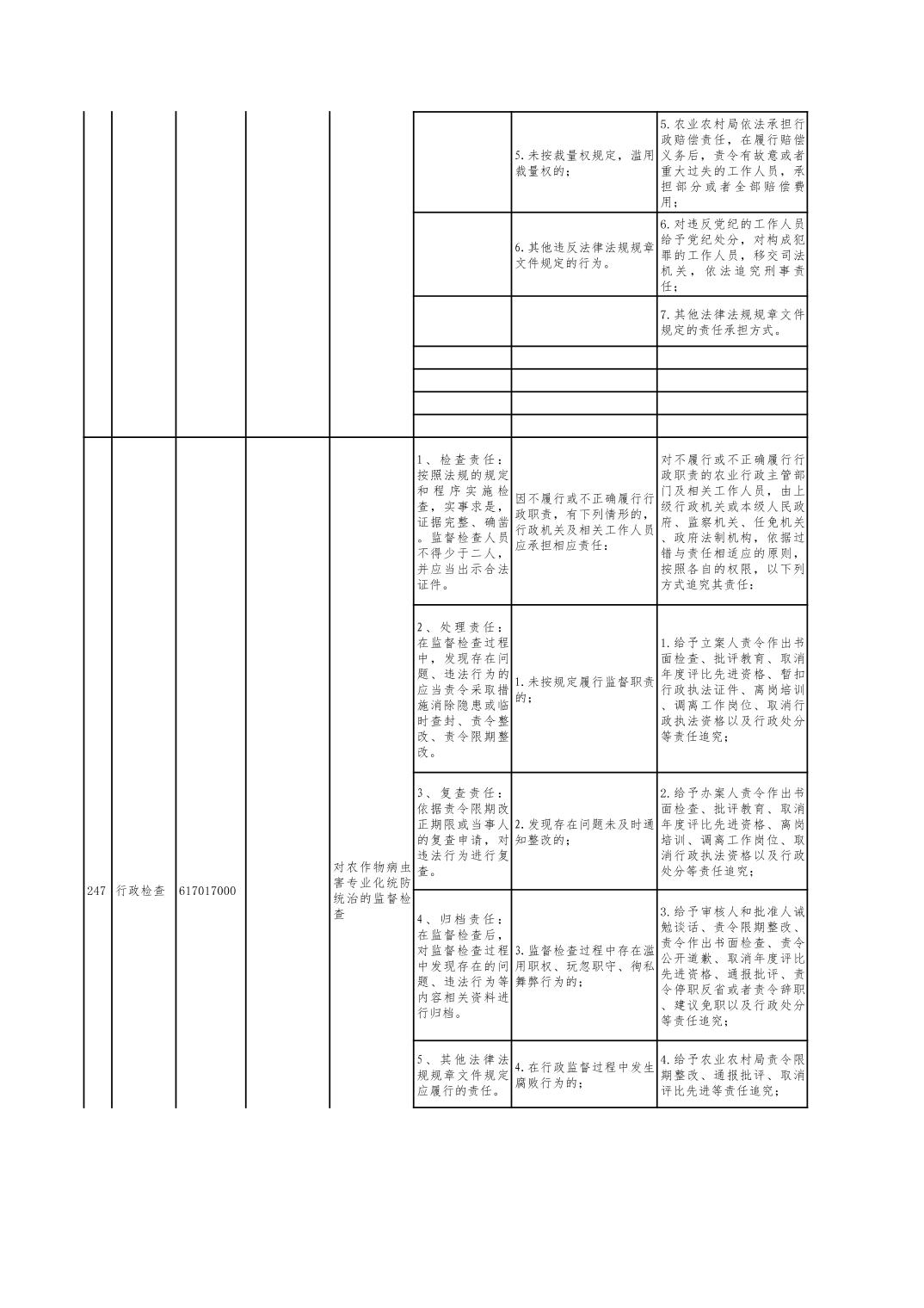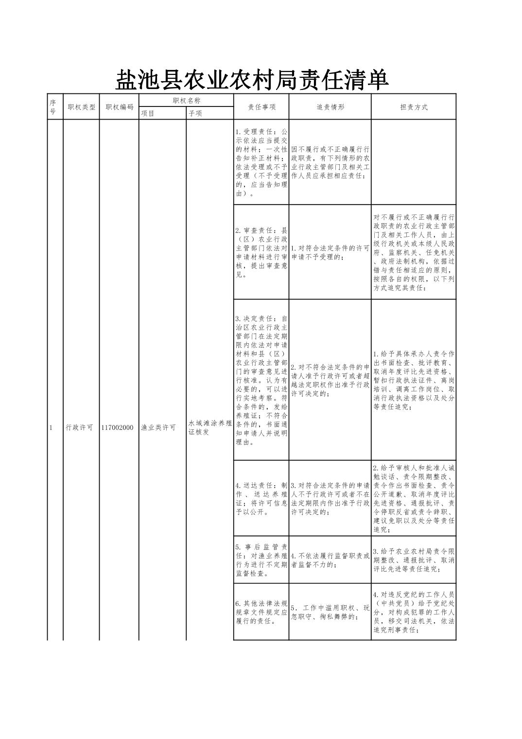 盐池县农业农村局责任清单(2024年)